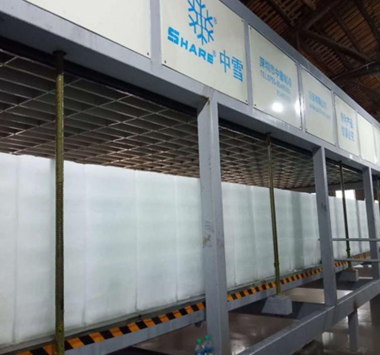 天津化工大型塊冰機項目項目介紹:天津化工大型冰磚機項目項目產品:冰磚機(100噸/天,冰塊規格100公斤/塊)天津化工產業發達,緊靠渤海灣,化工降溫和水產保鮮都需要大量的冰庫
